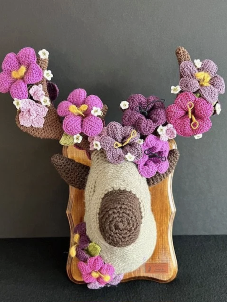 Vegan Taxidermy reimagines the tradition of taxidermy through fiber, transforming symbols of conquest into acts of care. Handcrafted animal forms emerge through textile processes, where softness replaces skin and labor replaces violence.