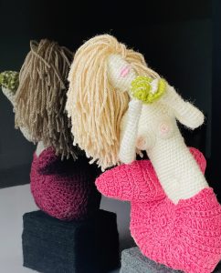 Human excess softens into handcrafted forms, where indulgence and desire twist, curl, and become objects of strange beauty. Every stitch is an obsessive act, a quiet tribute to our darker whims.